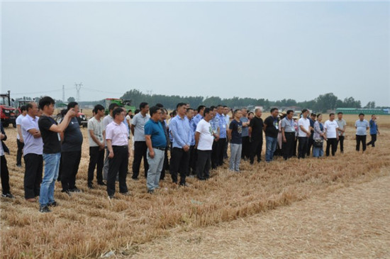 參會人員現(xiàn)場觀摩了小麥機(jī)收、秸稈還田、機(jī)械打捆、土地耕整、玉米播種等環(huán)節(jié)作業(yè)演示,聆聽技術(shù)講解,對小麥全程機(jī)械化作業(yè)方式進(jìn)一步有了直觀了解。