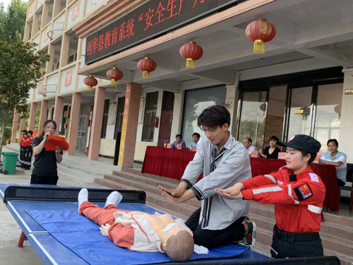 活動(dòng)現(xiàn)場(chǎng),消防教官為同學(xué)們講解了防火安全的重要性,火災(zāi)的預(yù)防和救助,演示了滅火器的使用方法;西華縣紅十字會(huì)救護(hù)師耿佳佳、姚華杰二人為同學(xué)們現(xiàn)場(chǎng)生動(dòng)講解演示“珍愛生命、預(yù)防溺水”的生動(dòng)安全教育課,讓同學(xué)了解溺水的危害性,做好有效預(yù)防溺水的重要性,演示發(fā)生溺水怎么辦及對(duì)溺水者如何做胸外心臟按壓,同學(xué)們認(rèn)真聆聽和學(xué)習(xí),學(xué)會(huì)了判斷呼吸心跳停止、按壓手法、按壓位置、打開氣道方法、判斷呼吸心跳是否恢復(fù)等急救技能。同學(xué)還掌握了溺水急救基本標(biāo)準(zhǔn):打開氣道、人工呼吸、胸外按壓。