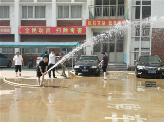 雖然天氣炎熱,大家汗流浹背,卻熱情高漲,積極性很高,大家紛紛拿起掃帚、抹布,提上水桶,充分發(fā)揚(yáng)不怕臟、不怕累的精神,對院內(nèi)道路、車棚、宣傳欄、綠化帶等處進(jìn)行沖洗、清掃,同時對各樓層門窗玻璃、消防栓、廁所等進(jìn)行集中清理……經(jīng)過兩個多小時的辛勤勞動,各辦公室窗明幾凈,廁所衛(wèi)生干凈整潔,車棚車輛擺放整齊,院內(nèi)環(huán)境煥然一新。
