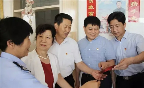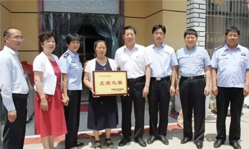 6月25日,河南省見義勇為基金會副理事長劉玉虎、秘書長鄭獻(xiàn)春一行來到鄲城縣見義勇為模范稱號的王軍生家中,劉玉虎親自將“光榮之家”的牌匾送到王軍生的愛人韓香手中。周口市公安局黨委委員、政治部主任郭冰,政治部副主任李亞鵬,基金會周口分會秘書長王鑫,鄲城縣委副書記、政法委書記崔衛(wèi)國,鄲城縣公安局政委趙紅建,鄲城縣公安局黨委委員、政工室主任李越,鄲城縣洺南辦事處書記張杰等參加了授牌。