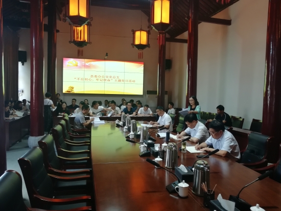6月25日下午,鹿邑縣委辦公室黨總支開展“不忘初心、牢記使命”主題黨日活動。縣委書記梁建松,縣委常委、辦公室主任侯自峰以普通黨員身份參加活動,并帶頭繳納了黨費。縣委辦公室常務副主任、黨總支書記胥茂森主持主題黨日活動??h委辦公室全體黨員參加活動。