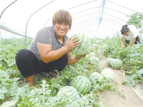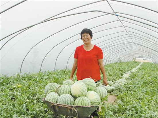 日前,沈丘縣周營鎮(zhèn)一大棚生態(tài)西瓜種植基地內(nèi),村民正在采摘搬運(yùn)西瓜。近年來,在推進(jìn)產(chǎn)業(yè)脫貧過程中,該鎮(zhèn)積極調(diào)整農(nóng)業(yè)產(chǎn)業(yè)結(jié)構(gòu),規(guī)模有序流轉(zhuǎn)土地,科學(xué)種植生態(tài)瓜果。目前,大棚生態(tài)西瓜種植已成為帶動(dòng)農(nóng)民增收致富的“甜蜜產(chǎn)業(yè)”。