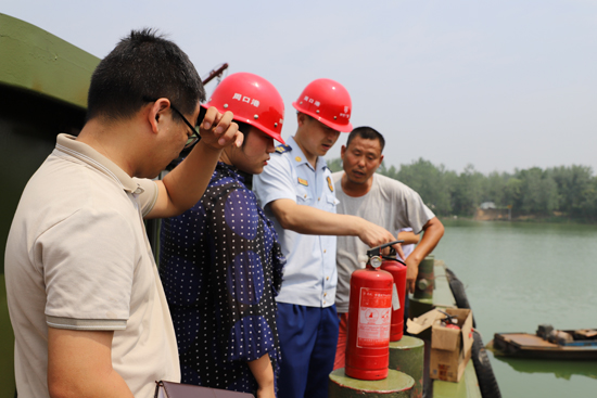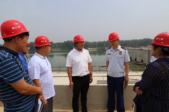 6月27日上午,周口港區(qū)黨委委員杜廣賢、管委會副主任劉明瀟到周口中心港碼頭排查安全生產工作。