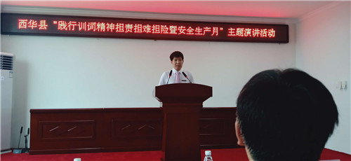 今年6月是全國(guó)第18個(gè)“安全生產(chǎn)月”,為牢固樹立安全發(fā)展理念,增強(qiáng)全民安全生產(chǎn)意識(shí)。6月28日下午,西華縣舉辦“踐行訓(xùn)詞精神擔(dān)責(zé)擔(dān)難擔(dān)險(xiǎn)暨安全生產(chǎn)月”主題演講比賽,來自應(yīng)急管理系統(tǒng)的15名選手齊聚賽場(chǎng),以一個(gè)個(gè)生動(dòng)的故事和深入人心的道理,深刻闡述了“安全”的內(nèi)涵。