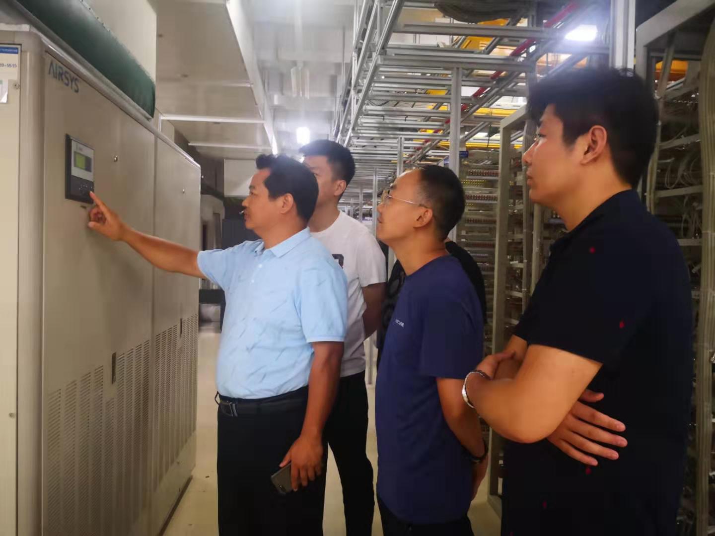 郭彥軍(左一)和同事們在查看空調(diào)加濕系統(tǒng)