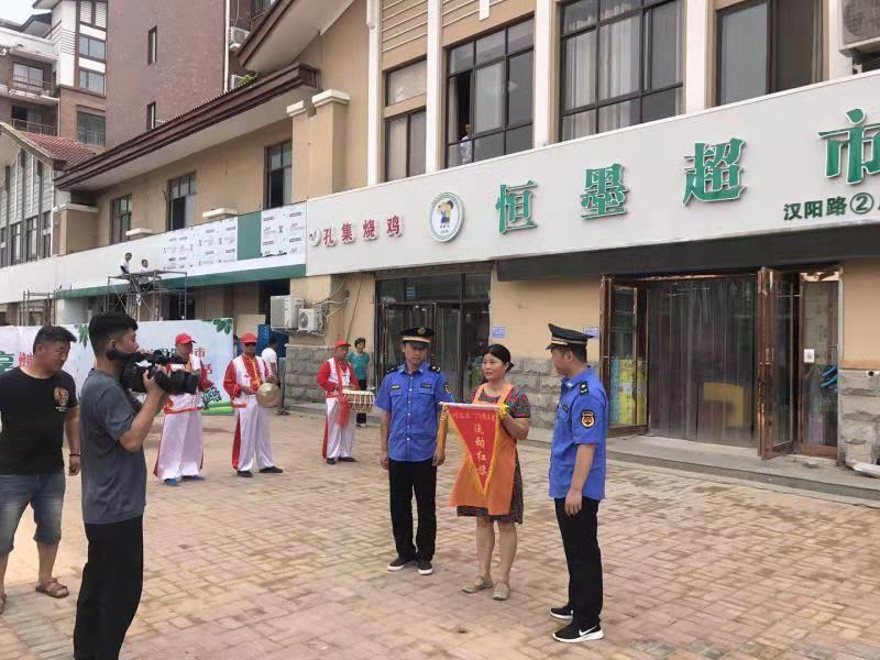 為鞏固創(chuàng)衛(wèi)成果,提高城市精細(xì)化管理水平,川匯區(qū)持續(xù)開(kāi)展“紅黑旗”評(píng)選活動(dòng)。7月22日,在陣陣鑼鼓聲中,該區(qū)城管人員又為6家紅旗商戶、6家黑旗商戶分別懸掛紅黑旗。