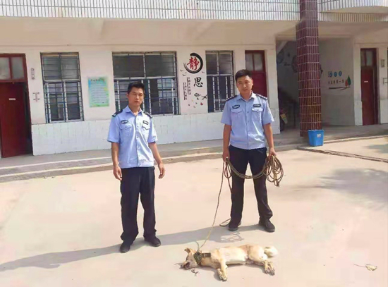 7月22日上午,西華縣公安局聶堆鎮(zhèn)派出所接到聶堆鎮(zhèn)前梁小學(xué)老師報(bào)警稱:該校有一條瘋狗,嚴(yán)重影響校園內(nèi)人員人身安全。