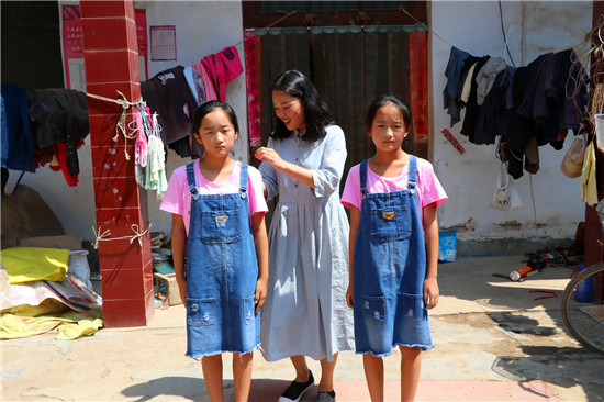 這次來看望“女兒”,王冬特意給小姐妹倆購買了幾件新衣服、鞋和一些書籍。穿上新衣服和鞋子,姊妹倆高興得手舞足蹈?!巴趵蠋?,你待她們給親閨女一樣,每次來都不忘給她們買東西。我們真不知道向你說啥好了?!笨粗鴤z孫女被王冬打扮的如此美麗好看,王肖晴的爺爺王客臣感動得連連向王冬道謝。