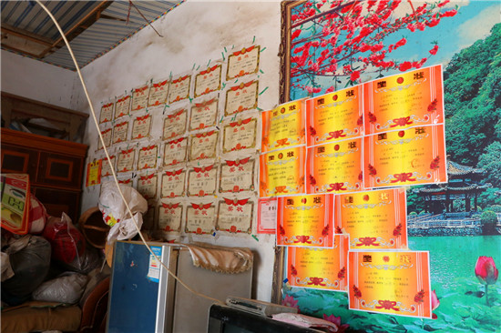 7月28日星期天,是王冬去看兩名"女兒"的時間。小姐妹家的院子不大,但被收拾得干干凈凈。屋內(nèi)擺放著一臺21英寸舊電視和一臺冰箱,但都是13年以前購買的。屋子北墻上貼滿了獎狀,十分惹眼,“倆孩子都爭氣,每次都拿獎,這些獎狀都是著她們學(xué)習掙來的?!蓖踝忧绲哪棠逃檬种钢鴫ι系莫劆钭院赖卣f。