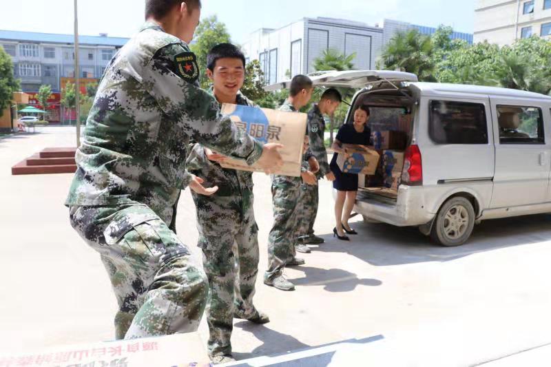 7月29日,太康縣清華園書(shū)店負(fù)責(zé)人李丹駕駛面包車(chē),先后來(lái)到縣人民武裝部和消防大隊(duì),為部隊(duì)官兵和消防指戰(zhàn)員送來(lái)礦泉水等。讓他們?cè)诟邷靥鞖饫锔惺艿角迦A園書(shū)店送來(lái)的絲絲清涼?!八麄兤匠S?xùn)練、滅火很辛苦,作為一個(gè)愛(ài)心企業(yè),關(guān)心部隊(duì)官兵是我應(yīng)盡的義務(wù)?!崩畹ばχf(shuō)。
