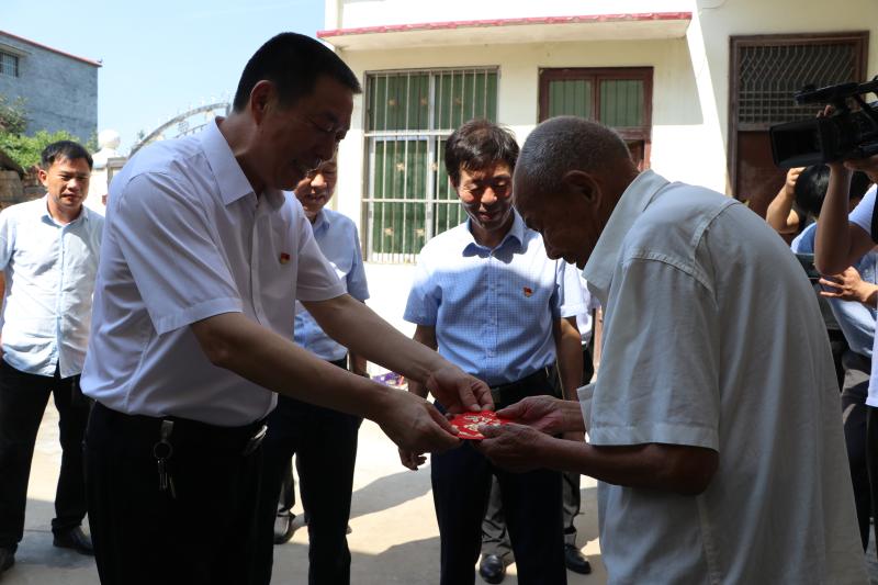 在蔣橋村王方正家,閆立超同他進(jìn)行了親切地交談,詳細(xì)詢問他現(xiàn)在的生活情況??吹剿眢w健康,閆立超非常高興,祝福他健康長壽,并囑咐其家人一定要照顧好老人。據(jù)介紹,王方正是解放戰(zhàn)爭老復(fù)原軍人,參加過淮海戰(zhàn)役等戰(zhàn)斗,現(xiàn)年91歲。