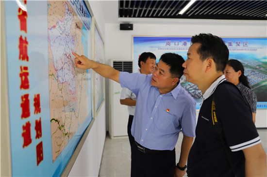 在周口中心港碼頭,周口港區(qū)黨委書記孫紅偉向顧立林一行表示歡迎,孫紅偉向來賓介紹了周口港區(qū)的整體規(guī)劃、中心港碼頭的建設(shè)運營情況和港區(qū)未來的發(fā)展前景,針對新華社河南分社記者在采訪中提出的問題,進行詳細解答。隨后,顧立林一行觀看了《以港促城》宣傳片,并登上貨船,實地采訪船民。