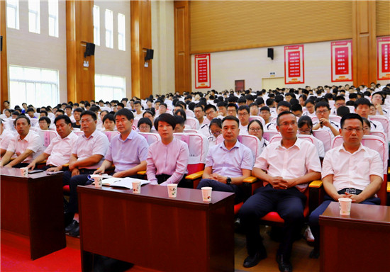 肖煒和與會(huì)領(lǐng)導(dǎo)同志分別向考入清華大學(xué)、北京大學(xué)的優(yōu)秀畢業(yè)生頒發(fā)獎(jiǎng)金、贈(zèng)送鮮花。鄲城一高黨委副書記白忠璽匯報(bào)了該校2019年高考成績(jī),副校長(zhǎng)張暉宣讀了學(xué)校表彰文件。