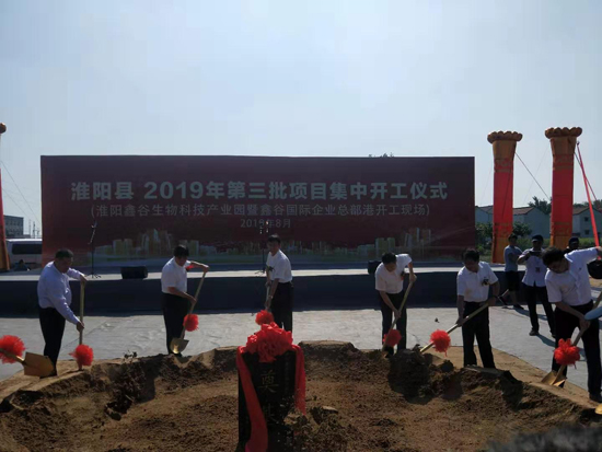 為響應(yīng)市委、市政府號召,落實(shí)縣委、縣政府決策部署,通過集中開工,借勢造勢,提振精神,鼓舞斗志,掀起全縣新一輪項(xiàng)目建設(shè)高潮,加快推進(jìn)淮陽經(jīng)濟(jì)社會快速發(fā)展。8月8日上午,淮陽縣在淮陽鑫谷生物科技產(chǎn)業(yè)園建設(shè)項(xiàng)目現(xiàn)場,舉行淮陽縣2019年第三批項(xiàng)目集中開工儀式??h領(lǐng)導(dǎo)馬明超、王毅、蘇中林、馬自成、董鴻、李祥生、鄒松、朱希炎、李鳳麗、張健及鑫谷生物科技項(xiàng)目董事長郭彥超參加了此次開工儀式。