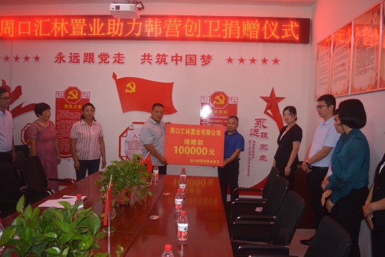 8月20日,周口匯林置業(yè)有限公司和周口市中意房地產(chǎn)開發(fā)有限公司分別捐款10萬元、5萬元,用于支持開發(fā)區(qū)太昊路辦事處的“創(chuàng)衛(wèi)”工作。