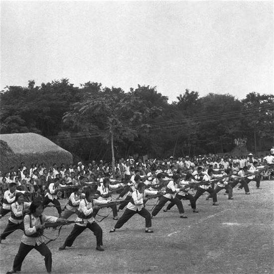 全民皆兵作為貫穿在毛澤東時代的一個最具中國特點(diǎn)的社會景觀,留下了許多值得回味的畫面。廣大農(nóng)民和工人亦兵亦民、亦工亦兵,拿起鋤頭是莊稼漢,走進(jìn)車間是工人,拿起槍桿就是一個兵。民兵訓(xùn)練在正規(guī)軍人的指導(dǎo)下利用農(nóng)閑時間,采取小型、就地、分散的方法進(jìn)行,主要訓(xùn)練課目有隊列、刺殺、步槍射擊、投手榴彈、簡易單兵戰(zhàn)術(shù)、站崗放哨等。