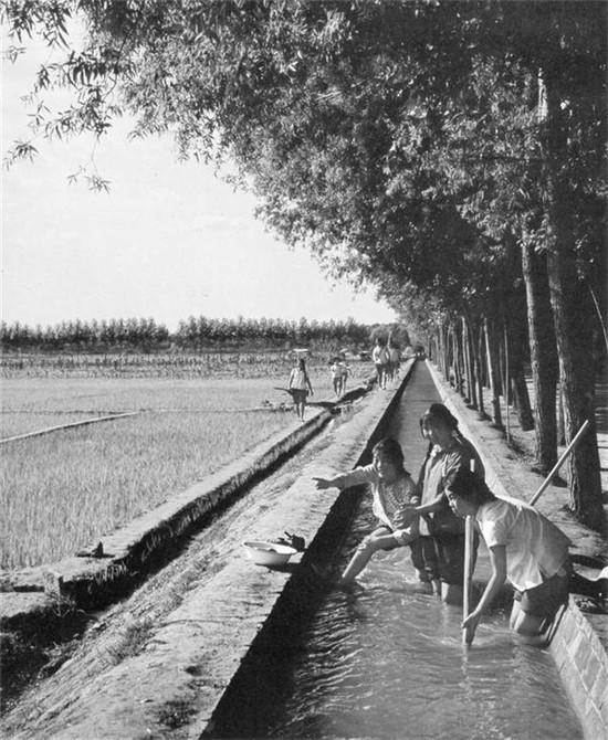 1975年6月,商水到周口公路兩邊的農(nóng)業(yè)水利干渠。 上世紀(jì)70年代,大批上海知識青年來到周口、商水、淮陽,進(jìn)行“上山下鄉(xiāng)”鍛煉,他們曾在商水利用干渠灌溉特點(diǎn)試驗(yàn)種植水稻?,F(xiàn)在,淮陽縣檔案館還存有一批知青報到的花名冊。 (圖片來源:圖書《Former yellow river flood area transformed》中文名《黃泛區(qū)變化》)