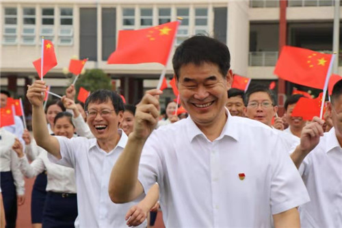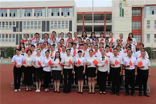 “我和我的祖國,一刻也不能分割。無論我走到哪里,都流出一首贊歌……”8月26日,在鄲城縣第二實(shí)驗(yàn)小學(xué),縣教體局黨組書記、局長劉現(xiàn)營帶領(lǐng)局黨組成員、機(jī)關(guān)各黨支部書記和二實(shí)小全體師生同唱《我和我的祖國》,用歌聲表達(dá)全縣教育人對祖國的無限熱愛。