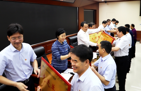 縣委常委、常務副縣長王智華宣讀了關于2018年度縣管領導班子綜合考評結果的通報;會議對獲獎單位進行了頒獎。