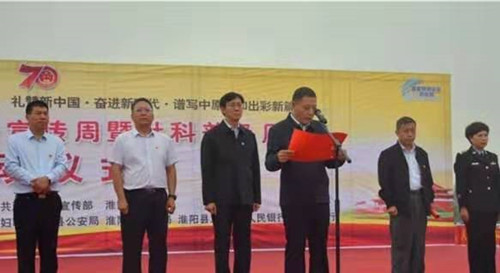 9月16日上午,2019年淮陽(yáng)縣網(wǎng)絡(luò)安全宣傳暨社科普及周啟動(dòng)儀式在羲皇文化廣場(chǎng)舉行。啟動(dòng)儀式上,縣委書(shū)記馬明超宣布2019年淮陽(yáng)縣網(wǎng)絡(luò)安全宣傳暨社科普及周啟動(dòng)??h委常委、宣傳部長(zhǎng)謝留定,縣人大常委會(huì)副主任張凌君,縣政協(xié)副主席李守運(yùn),縣總工會(huì)主席丁永華,縣公安局長(zhǎng)李鳳麗等出席活動(dòng)。