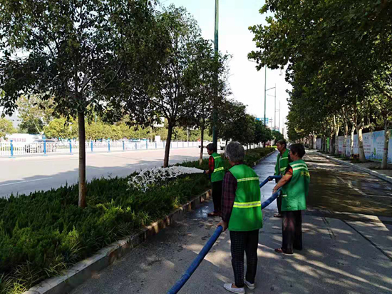 在國慶節(jié)即將到來之際,為打造整潔、文明、靚麗、和諧的城市環(huán)境,連日來,市城管局在中心城區(qū)組織開展了以“扮靚城市,為國慶增光添彩”為主題的活動(dòng),營造了良好的節(jié)日氛圍。圖為園林綠化工人在周口大道流沙河北段清洗綠化帶。記者 李一 攝