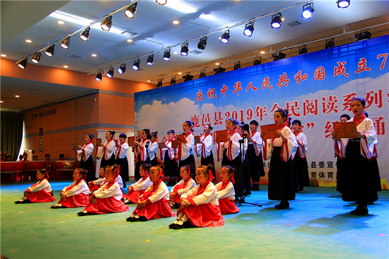 9月27日,由中共鹿邑縣委宣傳部主辦、鹿邑縣教育體育局承辦的慶祝中華人民共和國成立70周年、鹿邑縣2019年全民閱讀系列活動——全縣中小學(xué)生“歡樂進(jìn)萬家”經(jīng)典誦讀比賽(決賽)在弘德中學(xué)報告廳舉行,在初賽中嶄露頭角的十六個單位的近800名師生參加了決賽。