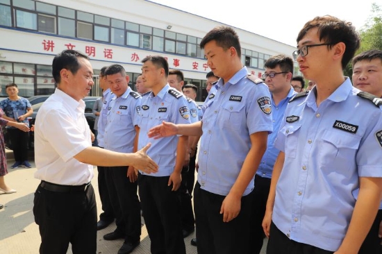 程若光主任對執(zhí)勤民警、輔警的辛苦付出表示誠摯慰問,對港區(qū)公安無私奉獻(xiàn)的精神給予充分肯定。程若光主任表示:港區(qū)公安分局是一支特別能戰(zhàn)斗、特別能吃苦、特別能奉獻(xiàn)的隊(duì)伍,為港區(qū)經(jīng)濟(jì)發(fā)展、掃黑除惡、打擊各類違法犯罪、維護(hù)社會(huì)大局平安穩(wěn)定作出了突出貢獻(xiàn)。今年是建國七十周年大慶之年,希望港區(qū)分局全體民警輔警繼續(xù)發(fā)揮艱苦奮斗精神,敢于斗爭、善于斗爭、勇于勝利、再接再厲,堅(jiān)守工作崗位,為港區(qū)社會(huì)穩(wěn)定經(jīng)濟(jì)發(fā)展再立新功。并勉勵(lì)大家要以更加飽滿的精神、更加昂揚(yáng)的斗志、更加頑強(qiáng)的作風(fēng),全力以赴做好新中國成立70周年大慶期間各項(xiàng)安保工作。最后,程若光向港區(qū)公安分局送去慰問金,囑托公安分局領(lǐng)導(dǎo)要安排好公安民警、輔警的工作和生活,為他們解決后顧之憂。