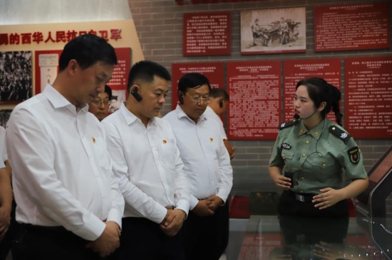 當(dāng)天下午,孫紅偉帶領(lǐng)港區(qū)黨委理論學(xué)習(xí)中心組成員前往位于西華縣杜崗村的杜崗會師紀(jì)念館。在杜崗會師紀(jì)念館,孫紅偉一行跟隨講解員,了解彭雪楓將軍生平,先后參觀學(xué)習(xí)了東進(jìn)序曲、會師杜崗、誓師東征、豐功偉績四個展區(qū)。講解員通過歷史圖片、現(xiàn)存實物以及流傳下來的英雄故事,向大家真實再現(xiàn)革命先烈在崢嶸歲月中,以英勇不屈的堅定信念,投身革命,救國家于危亡,為人民謀福祉的奮斗歷程。