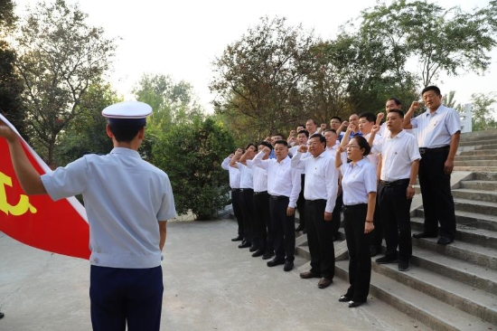 隨后,孫紅偉帶領(lǐng)港區(qū)黨委理論學(xué)習(xí)中心組,在杜崗會師紀(jì)念碑前重溫入黨誓詞。