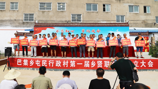 “段志軍每年都捐資捐物回報(bào)家鄉(xiāng),他去年捐30萬為巴集大街和屯民村安裝的200多盞路燈已經(jīng)亮了,捐85萬元新建的村室馬上竣工,將是全縣標(biāo)準(zhǔn)最高的,現(xiàn)在又捐60萬元;劉振發(fā)這幾年捐了40萬多,給村里修路、栽樹、幫扶貧困戶,今天又捐26萬;鄉(xiāng)賢會(huì)成立之前,大家已累計(jì)捐款240多萬元……”在今年8月6日屯民行政村鄉(xiāng)賢會(huì)成立儀式上,朱明理宣布捐款名單時(shí)多次被雷鳴般的掌聲打斷;“最難忘的就是村口的那棵大楊樹,最好吃的就是中午剩的涼面條、晚上嗑著大蒜吃?!痹谌T峽創(chuàng)業(yè)的劉振發(fā)的發(fā)言勾起了眾多游子的親情回憶;“啃個(gè)干饃,灶火里燒個(gè)辣椒一砸,撒點(diǎn)兒鹽就是最好吃的?!痹谏糖鹑温毜男炱渖浇舆^話茬說;“事業(yè)越大,工作越忙。但是,他們從四面八方歸來,這就是對(duì)家鄉(xiāng)的情誼,我們村肯定會(huì)越來越好?!编l(xiāng)賢徐其民感慨地說;“從屯民走出的大學(xué)生不少,如今長(zhǎng)成了企業(yè)家、行政干部等等,如參天大樹,卻不忘根、不忘本,這就是屯民的驕傲?!睆氖陆逃袠I(yè)35年的鄲城二高校長(zhǎng)趙耀身為屯村一員感觸良多……