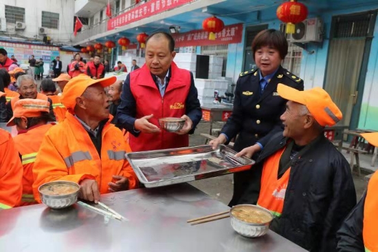 當日凌晨5時許,太康縣愛心早餐點人頭攢動,熱鬧非凡,一輛裝滿新鮮蔬菜的大貨車停放在院中,20多名城管志愿者在太康縣城管局局長張愛梅的帶領(lǐng)下正從車上往下卸蔬菜。聽說愛心企業(yè)要為環(huán)衛(wèi)工捐贈蔬菜,太康縣委常委、統(tǒng)戰(zhàn)部長張新棟也放棄節(jié)日休息,天不明趕到太康愛心早餐點,加入到蔬菜裝卸行列。“節(jié)日里,縣領(lǐng)導也不忘過來看望我們環(huán)衛(wèi)工,真讓人感動啊。”看著張新棟、張愛梅等人忙前忙后卸蔬菜,臉上浸滿了汗珠,環(huán)衛(wèi)工張大爺?shù)热藙忧榈卣f,“社會上有這么多好人關(guān)心我們環(huán)衛(wèi)工,我們再苦再累也值了!”