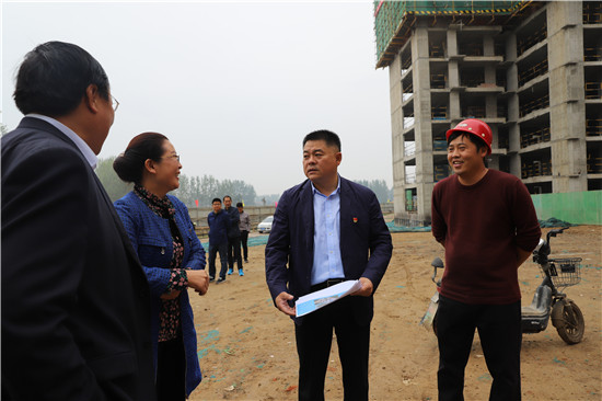 在未來家園四期項目建設(shè)工地,孫紅偉一行詳細聽取了施工單位負責人對項目施工現(xiàn)場情況的介紹,針對項目工地現(xiàn)場施工安全、環(huán)保要求,衛(wèi)生環(huán)境治理、項目觀摩展板設(shè)計、擺放等問題,孫紅偉現(xiàn)場提出意見和要求。