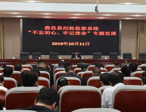 10月11日,鹿邑縣委常委、紀(jì)委書(shū)記、監(jiān)委主任韓林利用縣紀(jì)委監(jiān)委“不忘初心、牢記使命”主題教育集中學(xué)習(xí)時(shí)間以《砥礪初心本色 ,強(qiáng)化使命擔(dān)當(dāng),奮力推進(jìn)新時(shí)代紀(jì)檢監(jiān)察工作高質(zhì)量發(fā)展》為題為全縣紀(jì)檢監(jiān)察系統(tǒng)全體干部上了一堂生動(dòng)的專(zhuān)題黨課。