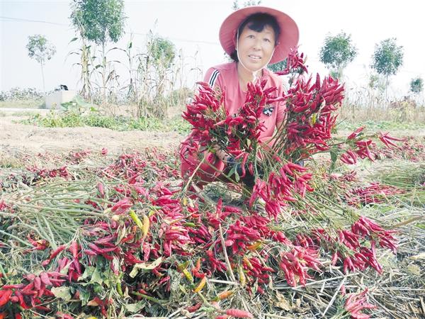 近日,扶溝縣汴崗鎮(zhèn)的辣椒種植戶們迎來(lái)豐收。汴崗鎮(zhèn)積極引導(dǎo)農(nóng)民調(diào)整種植結(jié)構(gòu),大力發(fā)展“訂單式”辣椒產(chǎn)業(yè),成為遠(yuǎn)近聞名的辣椒種植專(zhuān)業(yè)鎮(zhèn),推動(dòng)了脫貧攻堅(jiān)工作和鄉(xiāng)村振興戰(zhàn)略實(shí)施。圖為該鎮(zhèn)于營(yíng)行政村村民李素英向記者展示豐收的辣椒。記者 謝永靜 攝
