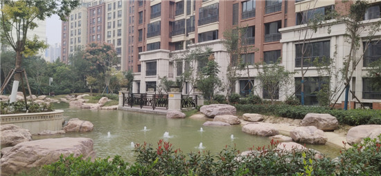 在九號(hào)院小區(qū),記者看到,地面用水沖洗得干干凈凈,院內(nèi)假山噴泉,小河潺潺流水,讓人置身其中,如在畫(huà)中游覽。