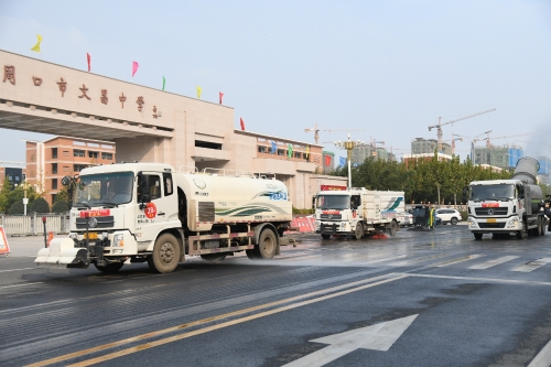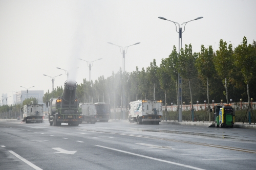 當(dāng)日下午,記者在市區(qū)光明路演示現(xiàn)場看到,2部吸塵車?yán)脧?qiáng)大的風(fēng)機(jī),在吸盤和路面之間形成瞬時(shí)負(fù)壓,將路面垃圾和塵土吸走,隨后緊跟1部高壓清洗車?yán)酶邏核?,將剩下的路面垃圾和塵土沖到路邊,然后由2部洗掃車進(jìn)行洗掃和收水,將沖到路邊的污水和垃圾收走,最后再緊跟1部抑塵車,利用環(huán)保除塵風(fēng)送式噴霧機(jī),進(jìn)行噴霧降塵作業(yè),實(shí)現(xiàn)一次聯(lián)合作業(yè),即可將路面浮塵、垃圾、污水、揚(yáng)塵等徹底清除,最大限度避免造成二次污染和對道路通行造成的干擾。