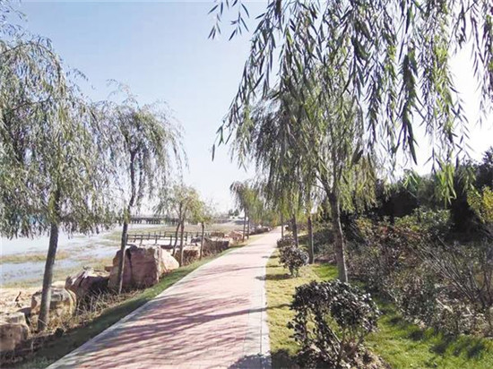 西華縣將賈魯河城區(qū)段河道綜合治理項目列入百城建設(shè)提質(zhì)工程,斥資5億多元,高標(biāo)準(zhǔn)規(guī)劃、高起點設(shè)計。經(jīng)過近兩年的建設(shè),如今河道兩旁的白皮樹、七葉樹、玉蘭等多種景觀樹亭亭玉立、隨風(fēng)搖曳,景觀效果已經(jīng)顯現(xiàn)。圖為賈魯河濱河景觀帶。