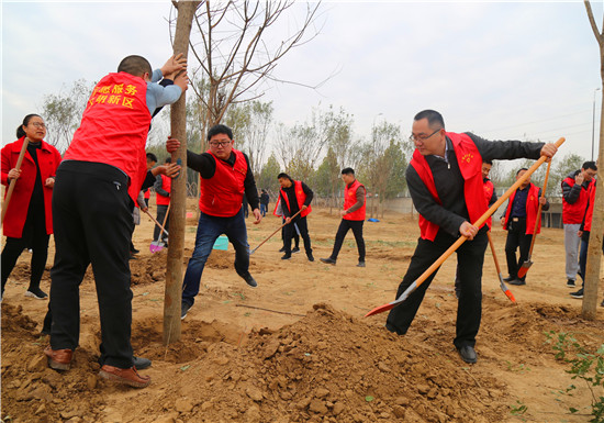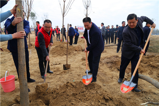 當(dāng)日上午,天氣微寒,但在示范區(qū)引黃調(diào)蓄工程的一角,卻是一派熱火朝天的景象,原來是示范區(qū)的200余名志愿者在植樹種綠。