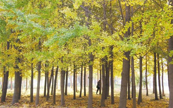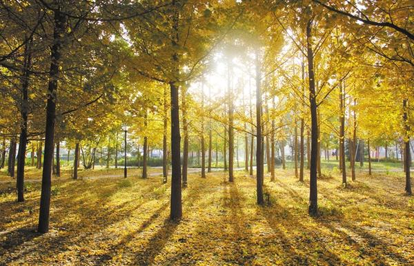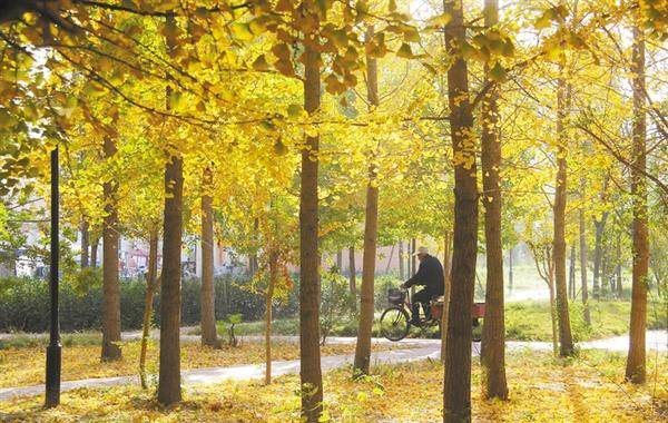 近日,周口市經(jīng)濟(jì)開(kāi)發(fā)區(qū)人民廣場(chǎng),金黃色的楊樹(shù)葉在陽(yáng)光照耀下熠熠生輝,給城市增添一抹亮色。張振海 攝
