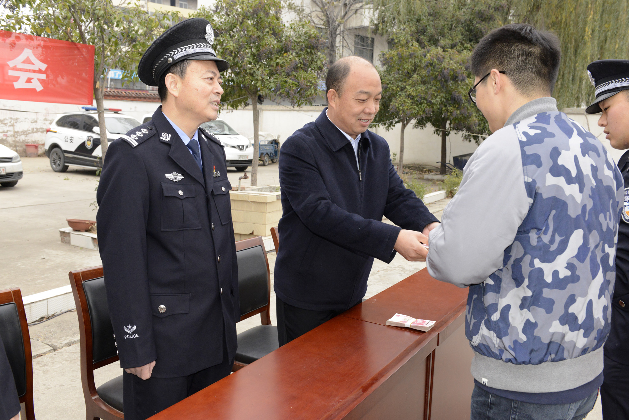 11月26日,扶溝縣公安局舉行公開退贓大會(huì),將破案繳獲的190萬元贓款及摩托車、電動(dòng)車、手機(jī)、金銀首飾等贓物分別發(fā)還給受害群眾。縣委副書記、政法委書記詹凱出席活動(dòng)并講話??h公安局刑偵大隊(duì)全體民警、部分被盜搶財(cái)物失主參加大會(huì)。會(huì)議由縣政府黨組成員、縣公安局黨委書記、局長(zhǎng)田豪杰主持大會(huì)。
