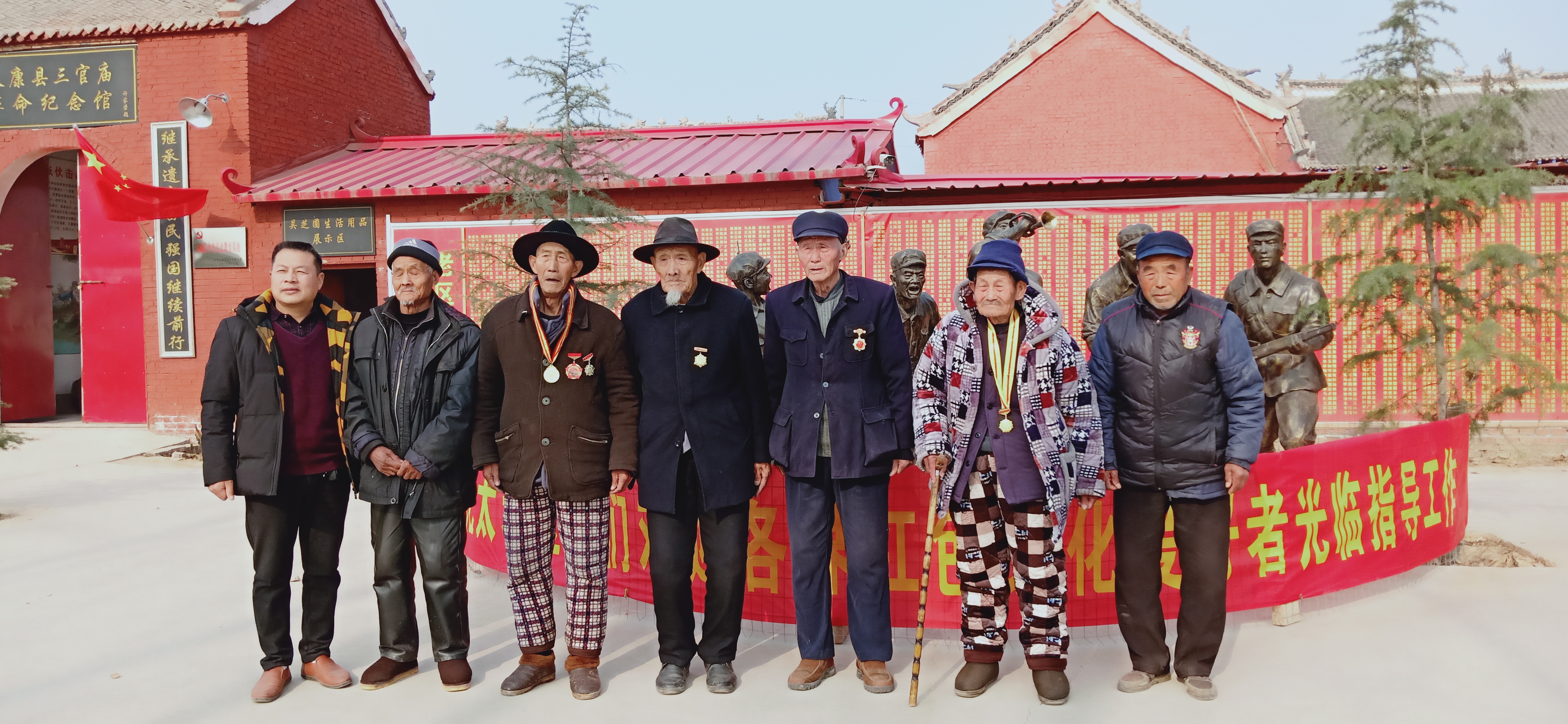 健在老兵在三官廟革命紀(jì)念館合影留念。