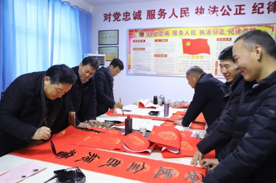 年末歲尾,我市書法家們到農(nóng)村、進(jìn)社區(qū)為群眾們義寫春聯(lián),成為節(jié)前一道靚麗風(fēng)景線。1月16日,我市6位知名書法家來到周口港區(qū)公安分局,特意為節(jié)日期間還要堅守工作一線的公安民警、輔警現(xiàn)場寫春聯(lián),送祝福。