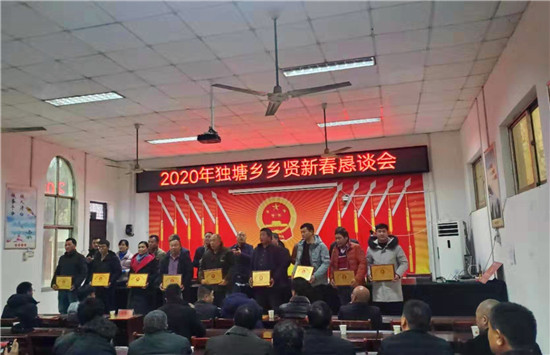 最后,鄉(xiāng)黨委書記高毓明向與會(huì)鄉(xiāng)賢代表送上了新春祝福,并介紹了獨(dú)塘鄉(xiāng)2020年發(fā)展規(guī)劃和未來工作思路,希望有資金、懂技術(shù)的成功人士回鄉(xiāng)發(fā)展創(chuàng)業(yè)。高毓明書記表示,獨(dú)塘鄉(xiāng)的每一分進(jìn)步、每一份成績(jī)的取得,都離不開鄉(xiāng)賢們的鼎力支持,希望各位鄉(xiāng)賢有空?;丶铱纯?,積極為家鄉(xiāng)發(fā)展獻(xiàn)言獻(xiàn)策,為建設(shè)美麗和諧新獨(dú)塘奉獻(xiàn)自己的一份力量。