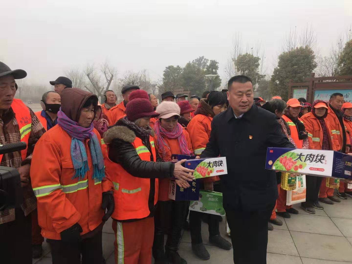 1月22日上午,天氣有些陰冷,葛杰帶著公司人員,拉著面粉、大米、牛奶、水果等慰問(wèn)品來(lái)到失能老人、環(huán)衛(wèi)工人身邊,送去節(jié)日問(wèn)候和新春祝福,大家心中頓感溫暖如春。