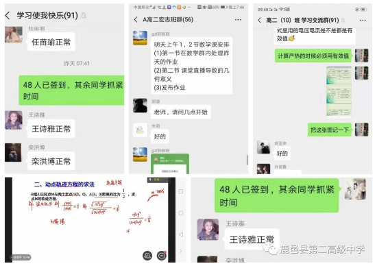 縣第二高級中學(xué)高三畢業(yè)班的班主任趙曉莉老師說:“疫情阻擋不了我對學(xué)生的關(guān)懷,疫情阻擋不了我對職責(zé)的擔(dān)當(dāng)!這就是我們二高人的精神和情懷!”新冠肺炎發(fā)生以來,學(xué)校以班級為單位組建網(wǎng)絡(luò)課堂,讓學(xué)生加入進(jìn)來,在線上直播課堂,學(xué)生聽課,線下布置作業(yè),學(xué)生按時打卡完成,實現(xiàn)停課不停學(xué),教師和學(xué)生“在家上課”!