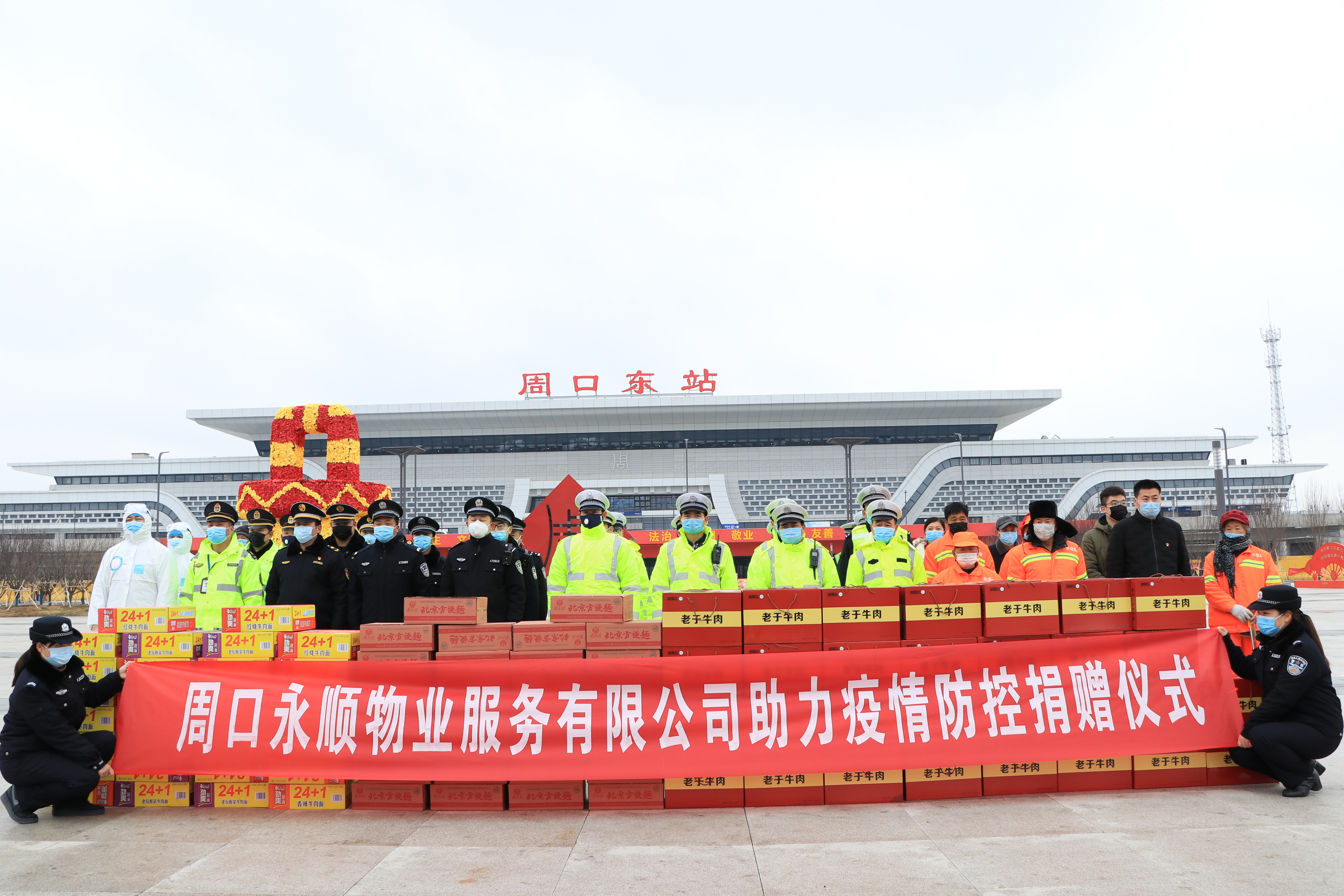 當(dāng)日上午10時許,周口永順物業(yè)服務(wù)有限公司總經(jīng)理李文永來到高鐵周口東站,他為疫情防控一線的公安民警、路政、城管、醫(yī)護、保潔等工作人員送來了火腿腸、方便面、牛肉等食品,解決一線工作人員吃飯難的問題。