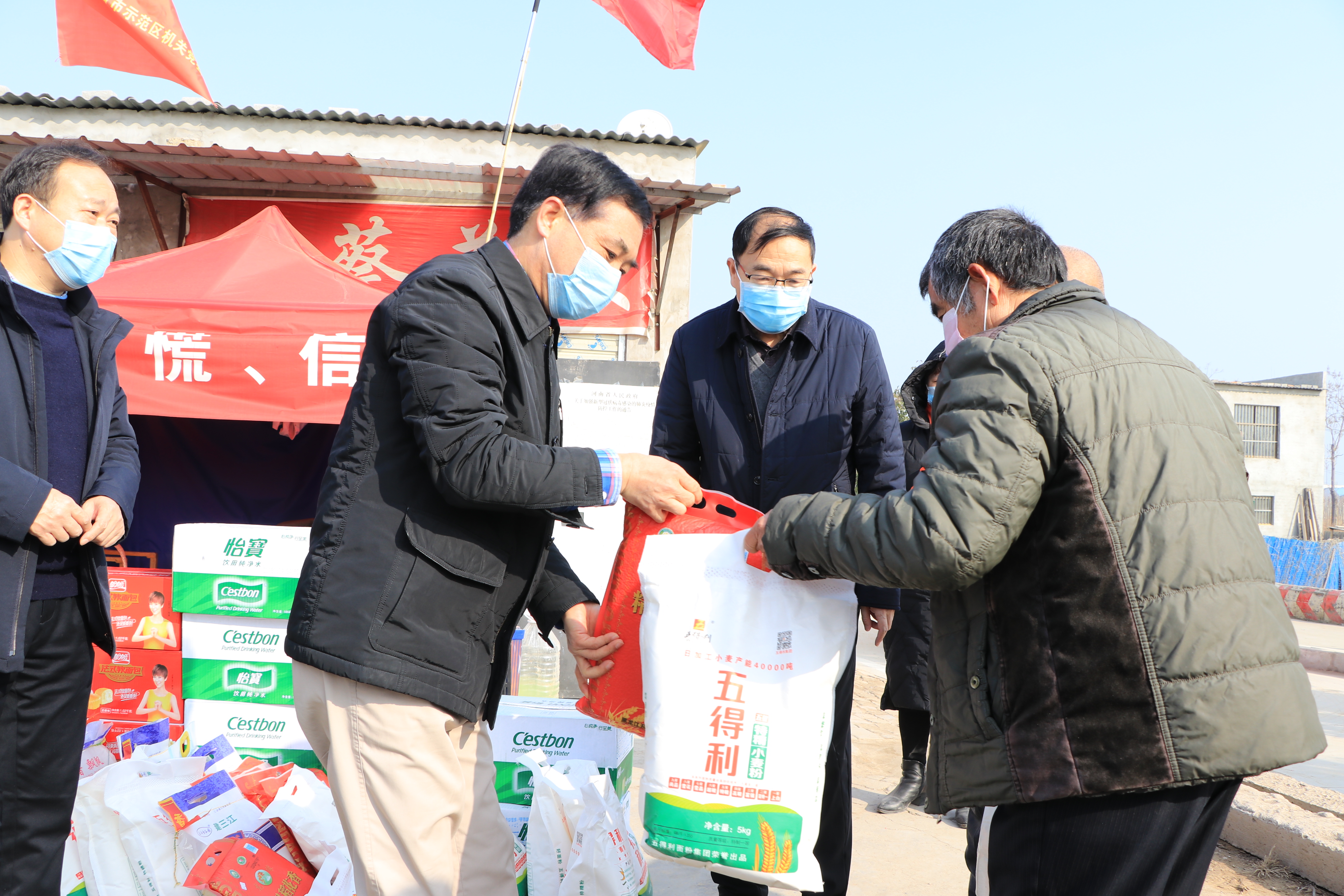 當(dāng)日上午,李德峰一行為賈寨村一線疫情防控人員和該村29戶殘疾人帶來了米、面、礦泉水、方便面、水果禮盒等食品,也帶來了暖暖的愛心?,F(xiàn)場,李德峰、丁有亮為疫情防控期間居家的29戶殘疾人發(fā)放了生活物資,并安慰大家一定要做好自我防護。
