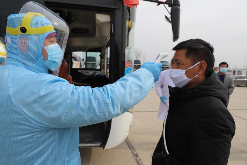 2月20日下午,24名農(nóng)民工到達(dá)港區(qū)汽車站,一輛經(jīng)過(guò)消毒后的59座大巴車已經(jīng)??吭谡军c(diǎn)。人員進(jìn)站、上車前由港區(qū)醫(yī)護(hù)醫(yī)護(hù)人員為他們進(jìn)行登記測(cè)量體溫。周口港區(qū)交通分局局長(zhǎng)王應(yīng)選介紹,接到任務(wù)后,交通分局與港區(qū)人社局、港區(qū)衛(wèi)生部門(mén)聯(lián)系,做好外出務(wù)工人員返崗消毒防疫的準(zhǔn)備,同時(shí),協(xié)調(diào)川匯區(qū),派出車況性能好、司乘人員素質(zhì)高的客運(yùn)車輛服務(wù)本次客運(yùn)。車站負(fù)責(zé)人苑本領(lǐng)介紹,為避免乘客之間相互感染,本班客車將嚴(yán)格按照疫情防控要求,將客座率控制在50%以內(nèi),汽車雙排座椅每排只能坐一名乘客,最后兩排作為隔離區(qū),不坐乘客。