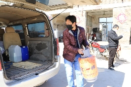 緊接著,馬不停蹄,許新衛(wèi)趕緊去為隔離人員充裝液化氣。許新衛(wèi)把液化氣空罐搬到車上,又是開(kāi)著他的面包車,一溜煙地朝著液化氣公司而去,約莫10多分鐘,來(lái)到一家液化氣充裝點(diǎn)。搬下氣罐、充氣,付過(guò)100元現(xiàn)金后,許新衛(wèi)把氣罐搬到車上,再次回到隔離人員居住的民營(yíng)醫(yī)院,卸下氣罐后,已經(jīng)將近11時(shí)了,他又趕緊來(lái)到許灣村南卡點(diǎn),搖身一變,又成了一位測(cè)量體溫的“衛(wèi)生員”。 這樣的生活,自從初一開(kāi)始直到現(xiàn)在,他從來(lái)沒(méi)有停止過(guò)。