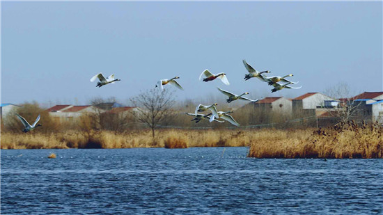 據(jù)在淮陽(yáng)龍湖北岸疫情卡點(diǎn)值守的安保人員王寶峰介紹,除了這一批50多只白天鵝來(lái)龍湖歇腳外,幾天前的2月18日,還有100多只白天鵝在太昊陵前廣場(chǎng)上空盤旋一圈后飛到了龍湖,在龍湖停留一天后向北方遷徙了。